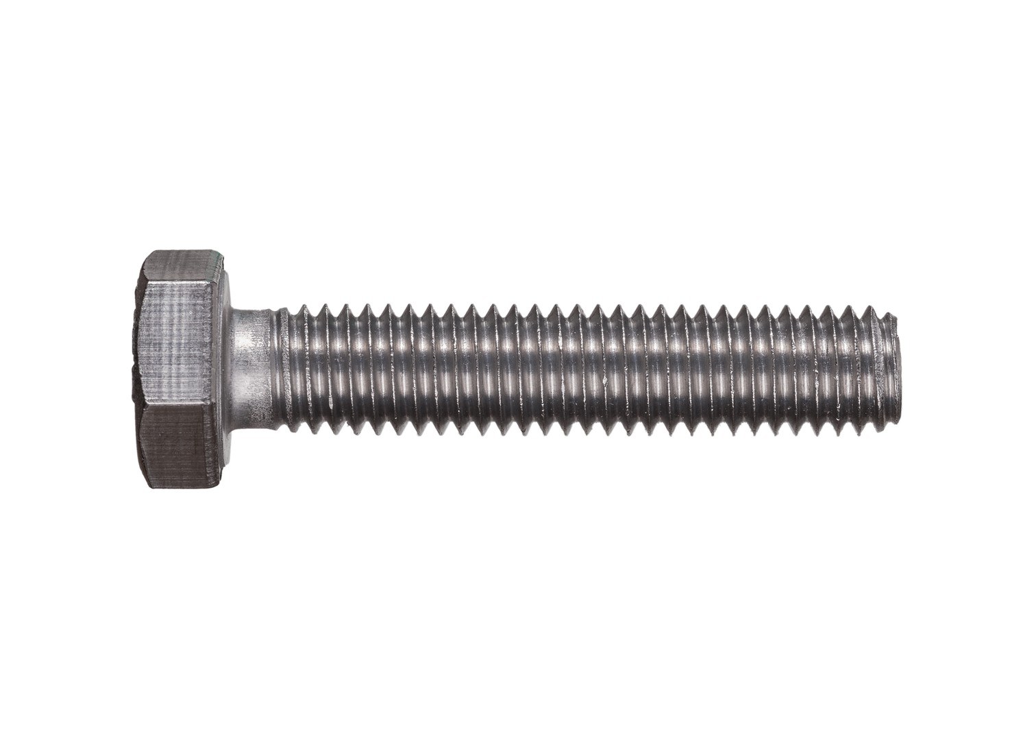 Нержавеющий болт DIN 933 А2 и А4 предназначены для создания механического соединения с гайкой соответствующего диаметра, которое способно выполнять свою функцию во влажной или в кислотно – щелочной средах. Болты выполнены из аустенитных сталей А2 и А4. Марки стали отличаются отсутствием развития в них коррозийных процессов, химической пассивностью, соответствием экологическим нормам. Сталь А4 противостоит воздействию сильных кислотных и щелочных растворов. Сталь A2 в процессе прессования приобретает способность намагничиваться. Действующие стандарты допускают использование креплений из нержавеющего болта и нержавеющей гайки при температурах окружающей агрессивной среды от -200 °С до +450 °С, в зависимости от марки стали. Категорически запрещается создавать соединение из нержавеющего болта и гайки из углеродистой стали. При сравнении механических свойств углеродистых и нержавеющих сталей очевидно, что аустенитные стали более «мягкие» – они отличаются меньшим пределом текучести. Рассмотрим предельные нагрузки на растяжение и срез для болтов из нержавеющих сталей. Для диаметра 16 мм растяжение/срез (класс 50 -- 5500/6000кг) Очень важно понимать, что предельная нагрузка это усредненный показатель, здесь не учитываются динамические, резонансные нагрузки, момент затяжки болта. Рабочая нагрузка не должна превышать 15 % от предельной.