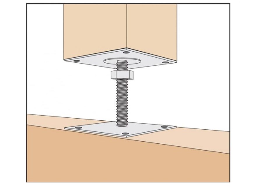 С помощью анкера, регулируемого по высоте, может легко регулировать величину усадки деревянных конструкций и домов. Анкер позволяет добиться горизонтального уровня конструкции на этапе строительства. Состоит из двух оцинкованных стальных площадок, оцинкованной шпильки с резьбой М20, М24 и соответствующей гайкой.