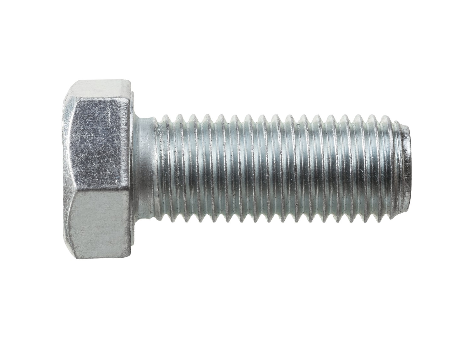 Болт с полной резьбой DIN 933 изготавливается из прочных видов стали, которые затем пассируются и покрываются цинковым сплавом. Он придает креплению белый цвет и улучшает антикоррозийные свойства. Данный вид крепежа представляет собой основание с нанесением резьбы с частым шагом, которая вплотную подходит к шестигранной головке. Болт с полной резьбой используется в машиностроении и на производстве, а также для монтажа особо прочных тяжелых конструкций из металла. Рассмотрим предельные нагрузки на растяжение и срез. Для диаметра 14 мм растяжение/срез (класс 5,8 - 3100/3300),(класс 8,8 - 4450/4800 кг) Очень важно понимать, что предельная нагрузка это усредненный показатель, здесь не учитываются динамические, резонансные нагрузки, момент затяжки болта. Рабочая нагрузка не должна превышать 15 % от предельной.