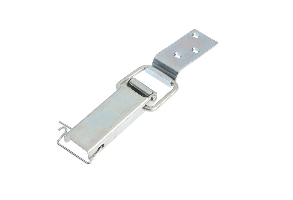 Замок применяется в качестве фурнитуры для металлических или деревянных ящиков. Замок продается комплектом: сам замок, ответная часть и запирающая шпилька.  Имеет цинковое - антикороззионное покрытие. В замке предусмотренно отверстие для шпильки, чтобы избежать открытие замка при транспортировке.