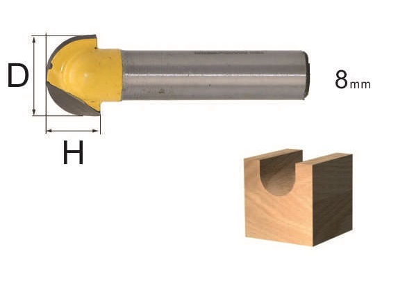 Фреза полукруглая 8х16