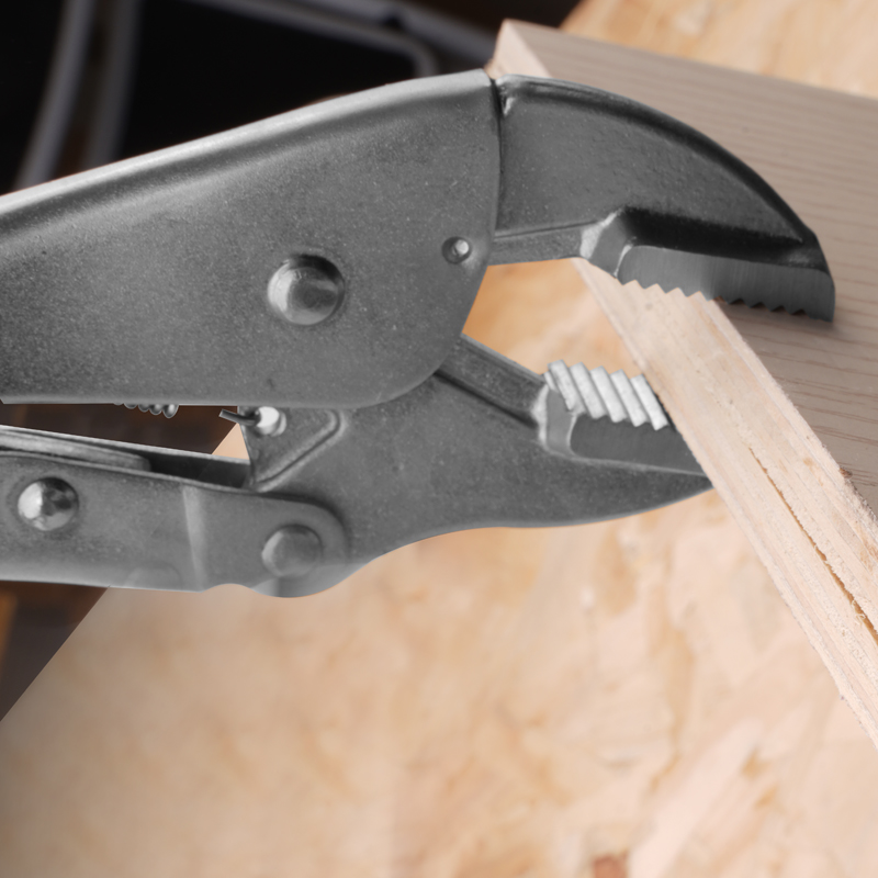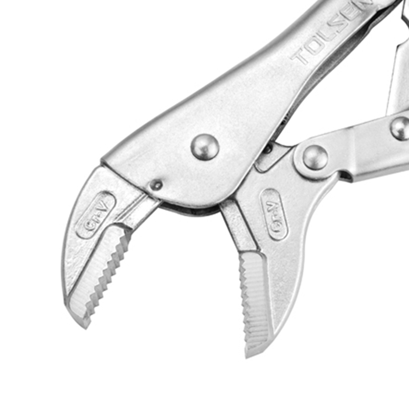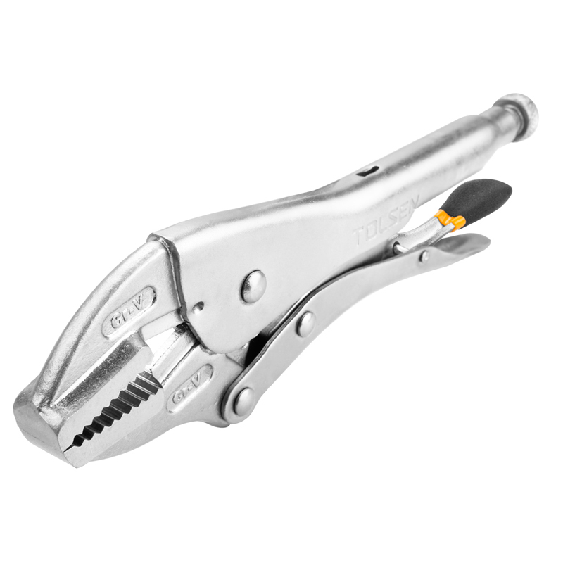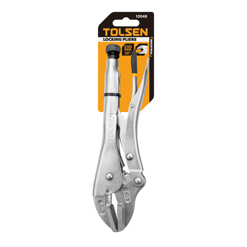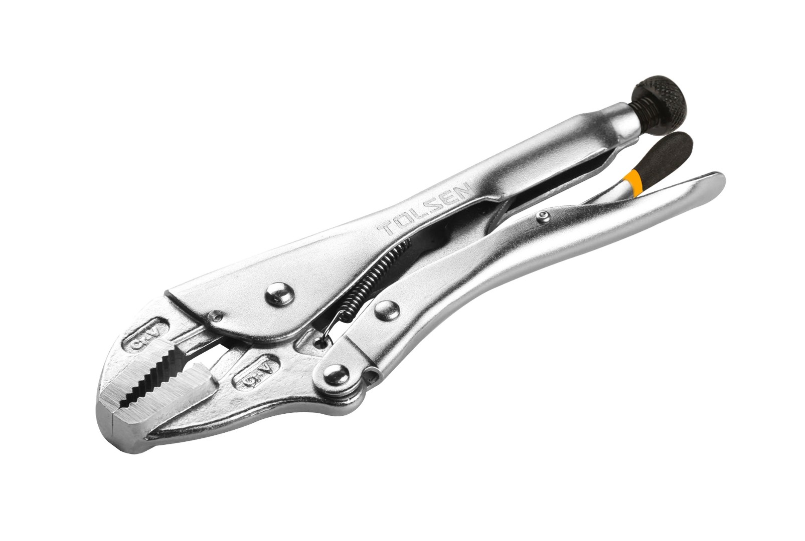 Промышленная серия зажимных усиленных плоскогубцев 250 мм Tolsen. Изготовлены из хромванадиевой стали, покрыты специальным огнеупорным цинковым составом. Твердость губок до 56 Hrс.  Удобные ручки, усиленный рычажный механизм.
