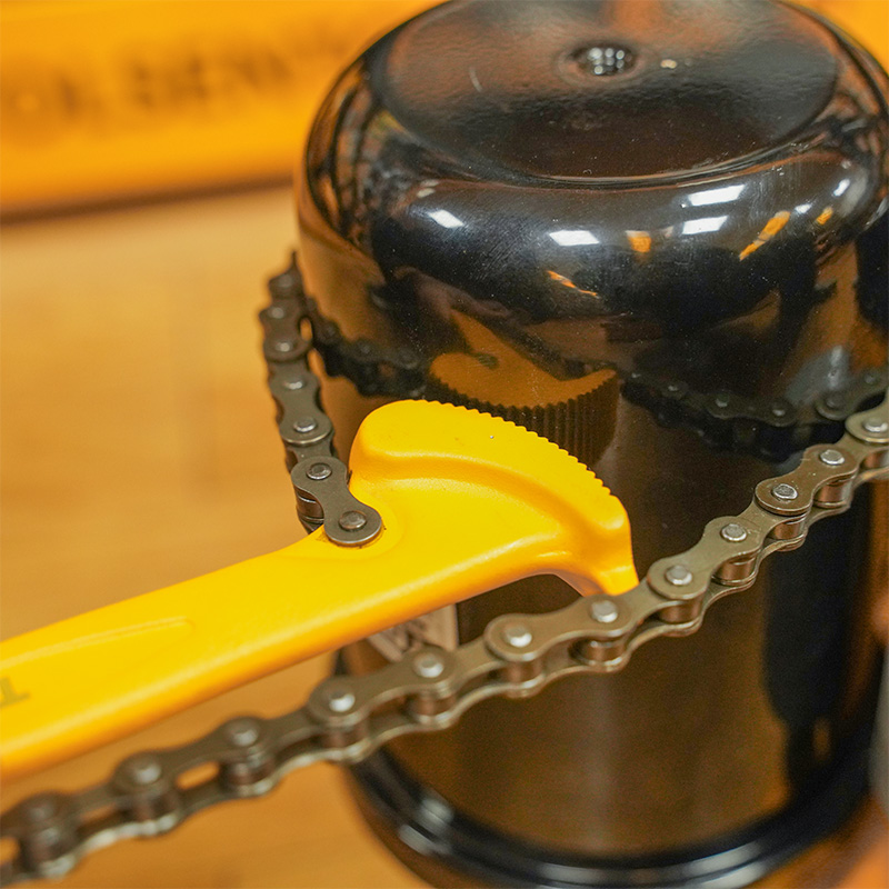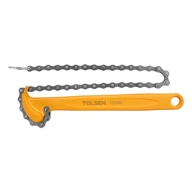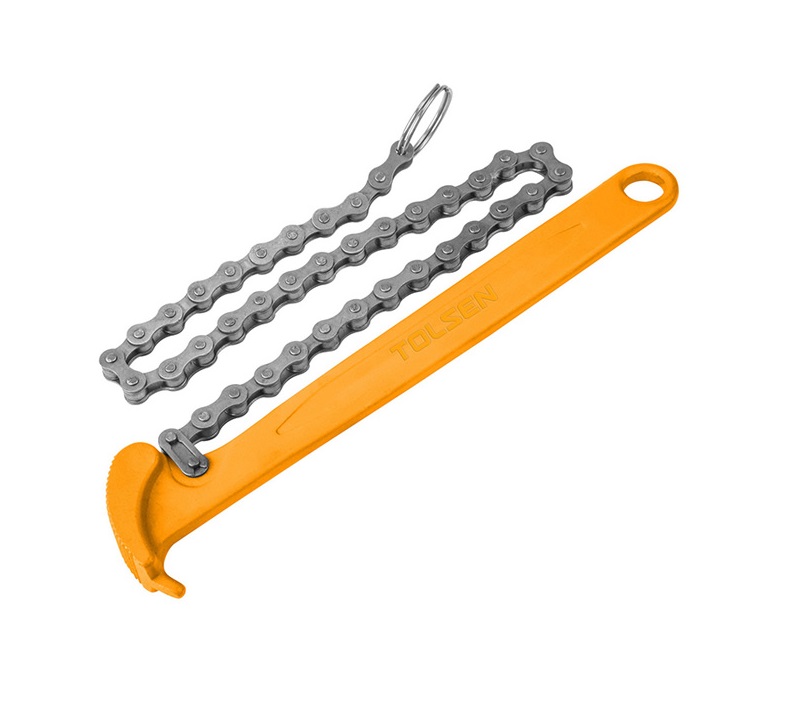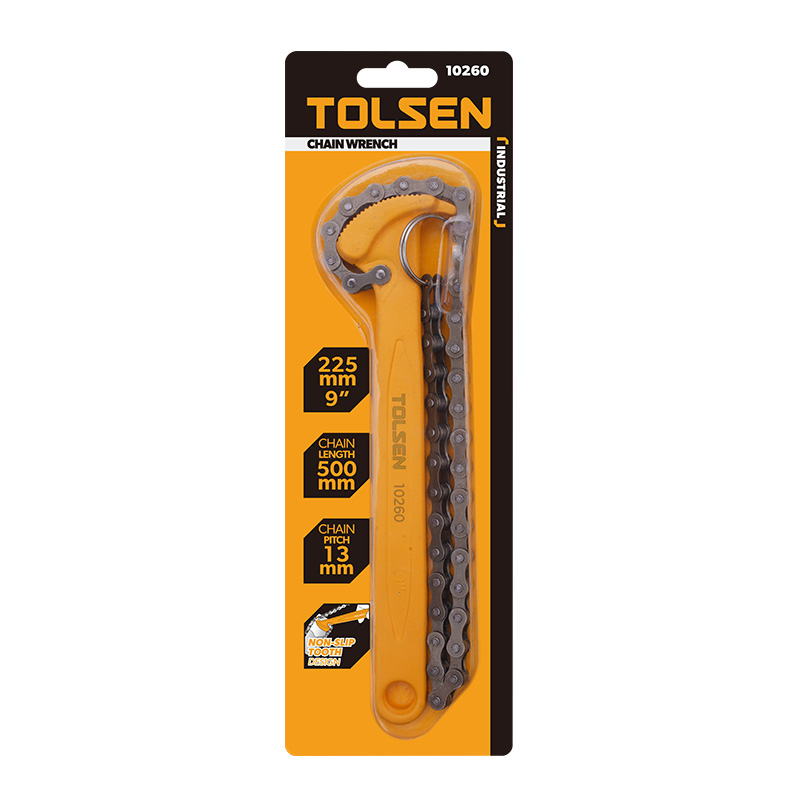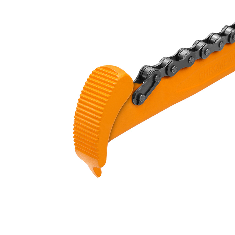 Материал ручки: углеродистая сталь № 45 с термообработкой. Длина цепи: 500 мм. Шаг цепи: 13 мм.  Нескользящая конструкция зубьев.