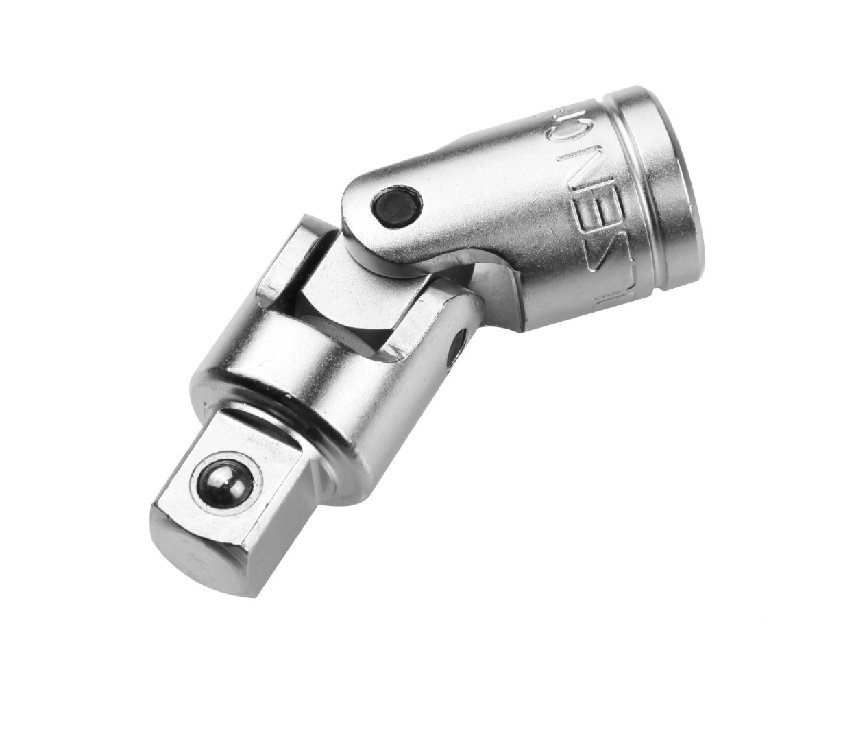Хромированный.  Отполированный и покрыт защитным слоем от коррозии. Шарнирная головка и подпружиненный шарикоподшипник для надежного удержания гнезда. Размер 1/2″x75мм.