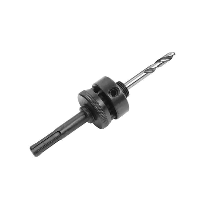 Держатель для коронок с центрирующим сверлом в сборе. Предназначен для крепления коронок биметаллических. Хвостовик держателя с шестигранной формой не проворачивается в патроне дрели. Держатель с хвостовиком SDS+ позволяет использовать перфоратор в режиме безударного сверления.