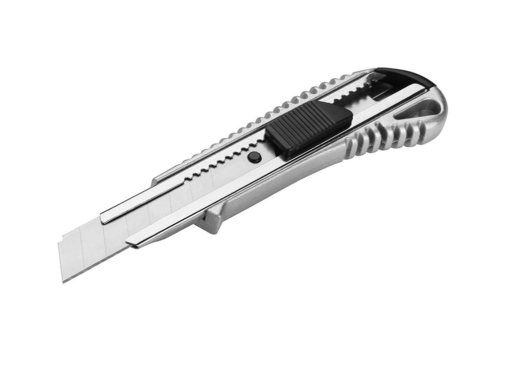 Нож с выдвижным сегментированным лезвием 18 мм алюминиевый корпус предназначен для резки различных материалов, таких как бумага, картон, линолеум, кожа и т.д. Автоматическая фиксация лезвия. Эргономичная двухкомпонентная рукоятка отлично лежит в руке, не скользит.