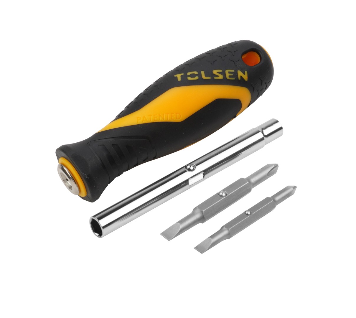 Состав 2 шт. двухсторонних биты CrV: PH1+SL5 8,00x75 мм, PH2+SL6. Двухсторонний шестигранный держатель бит: 6 мм+8 мм. 1 сменная ручка.  Упаковка: двойной блистер.