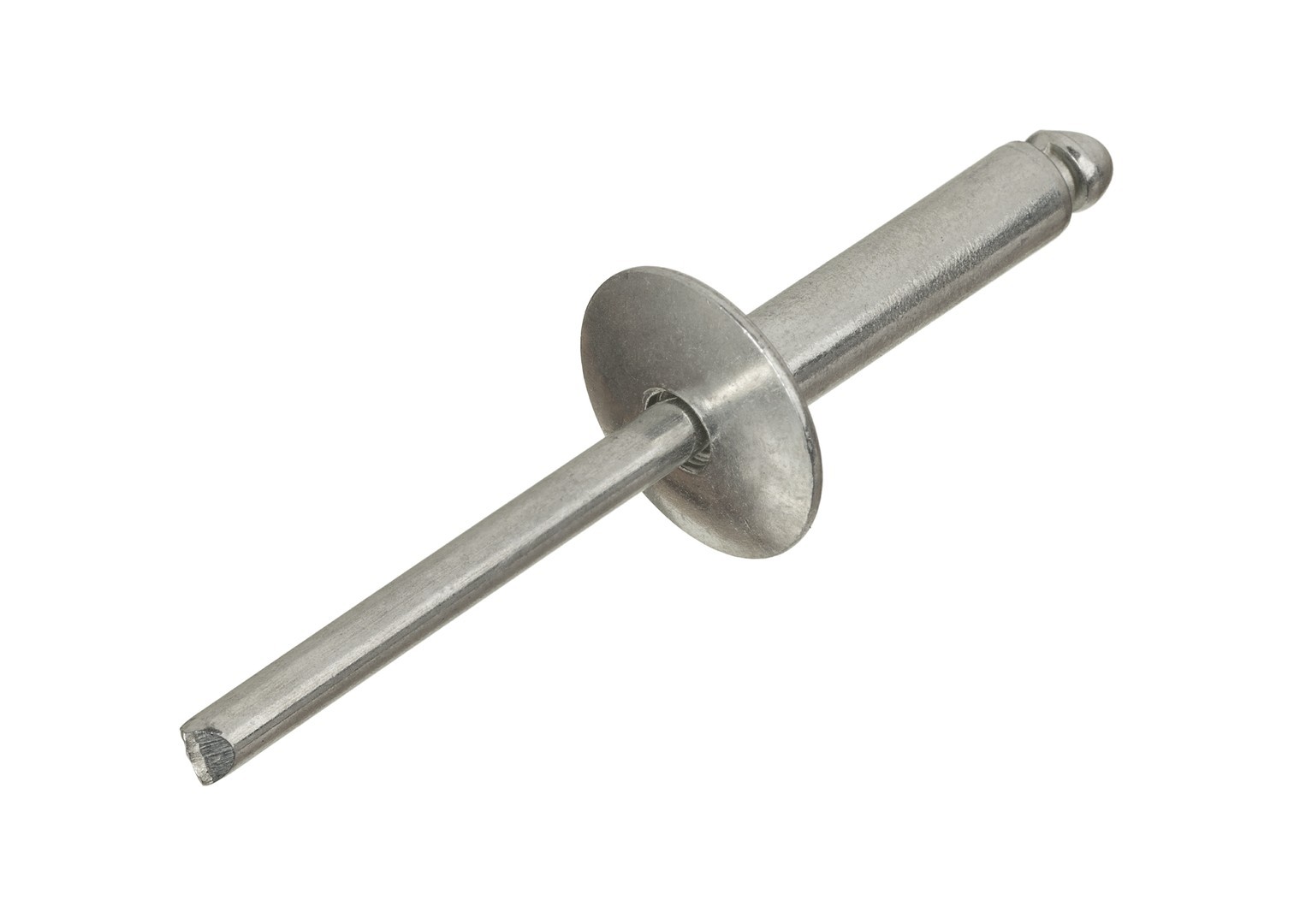 Заклепки вытяжные нержавеющие применяются для крепления тонколистового металла и других твердых материалов, доступных для монтажа только с одной стороны.  Диаметр сверла для заклепки 5,0 мм. Прочность соединения на разрыв (стальные листы) - 305 кг. Длинна заклепки должна быть на 3-6 мм больше толщины скрепляемых материалов. Широкая шляпка позволяет лучше фиксировать относительно мягкие материалы.