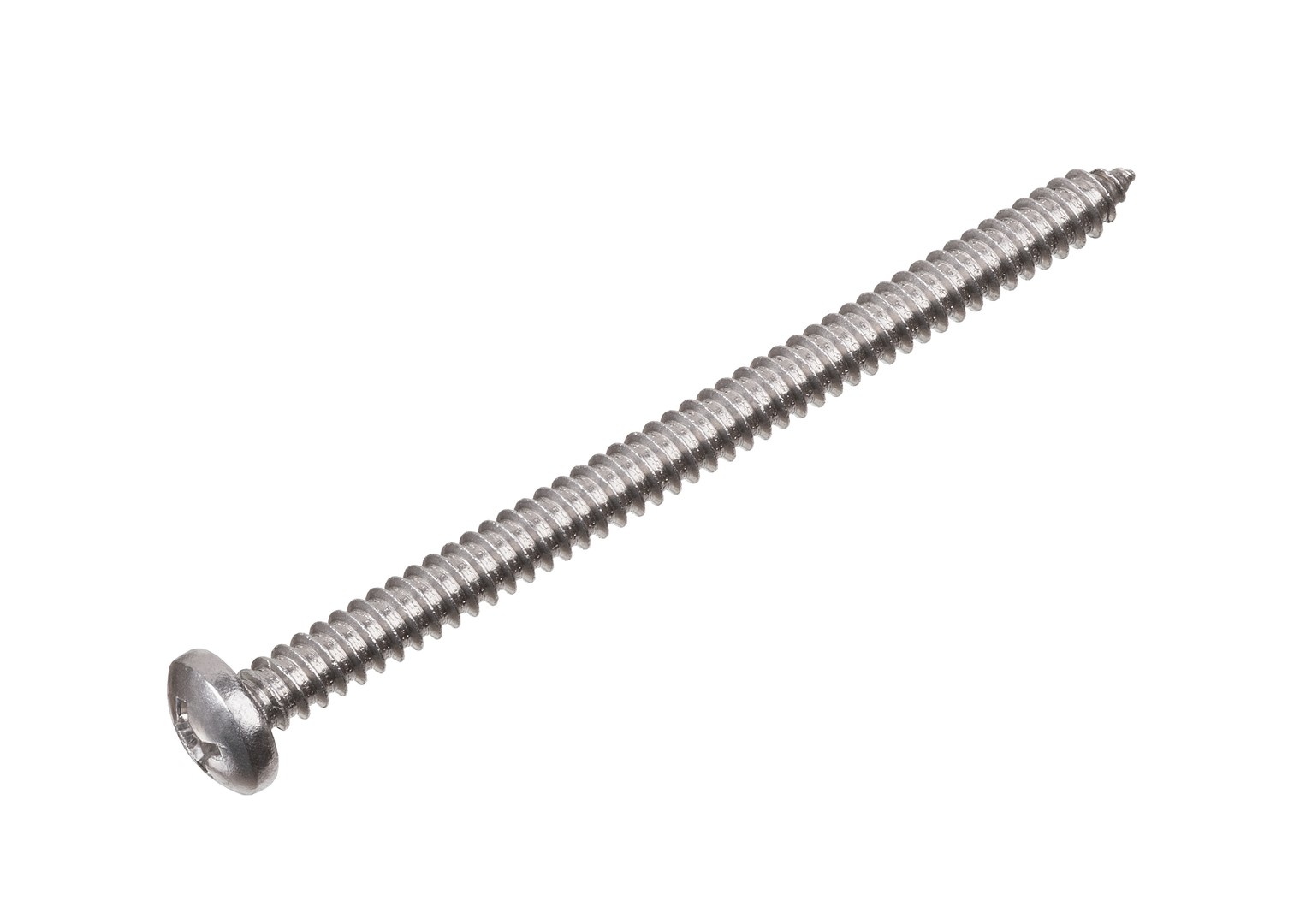 Саморез по металлу стандарта DIN 7981 из нержавеющей стали – тип крепежа, состоящего из полукруглой головки и хвостовика с полной резьбой. Самонарезающие винты DIN 7981 изготавливают из нержавеющей стали А2 (AISI 304) и А4 (AISI 316). Полусферическая головка самореза по металлу DIN 7981 оснащается шлицами Philips (крестообразный под биту Ph). Низ головки самореза выполнен в виде плоской опорной поверхности для равномерного прижатия монтируемого материала к основанию. Саморез предназначен для крепления листовой стали, фанеры, ДСП, ОСБ, ДВП, а также оргалита, пластика, поликарбоната, композитных материалов и т.п. к металлическим и деревянным несущим конструкциям посредством резьбы со специальным шагом. Перед установкой самонарезающих винтов DIN 7981 из стали А2 А4 в монтируемых материалах выполняется разметка и сверловка отверстий, соответствующих диаметру крепежа. Это позволяет предотвратить образование трещин, разрывов, нанесения царапин и других непредвиденных деформаций материала.