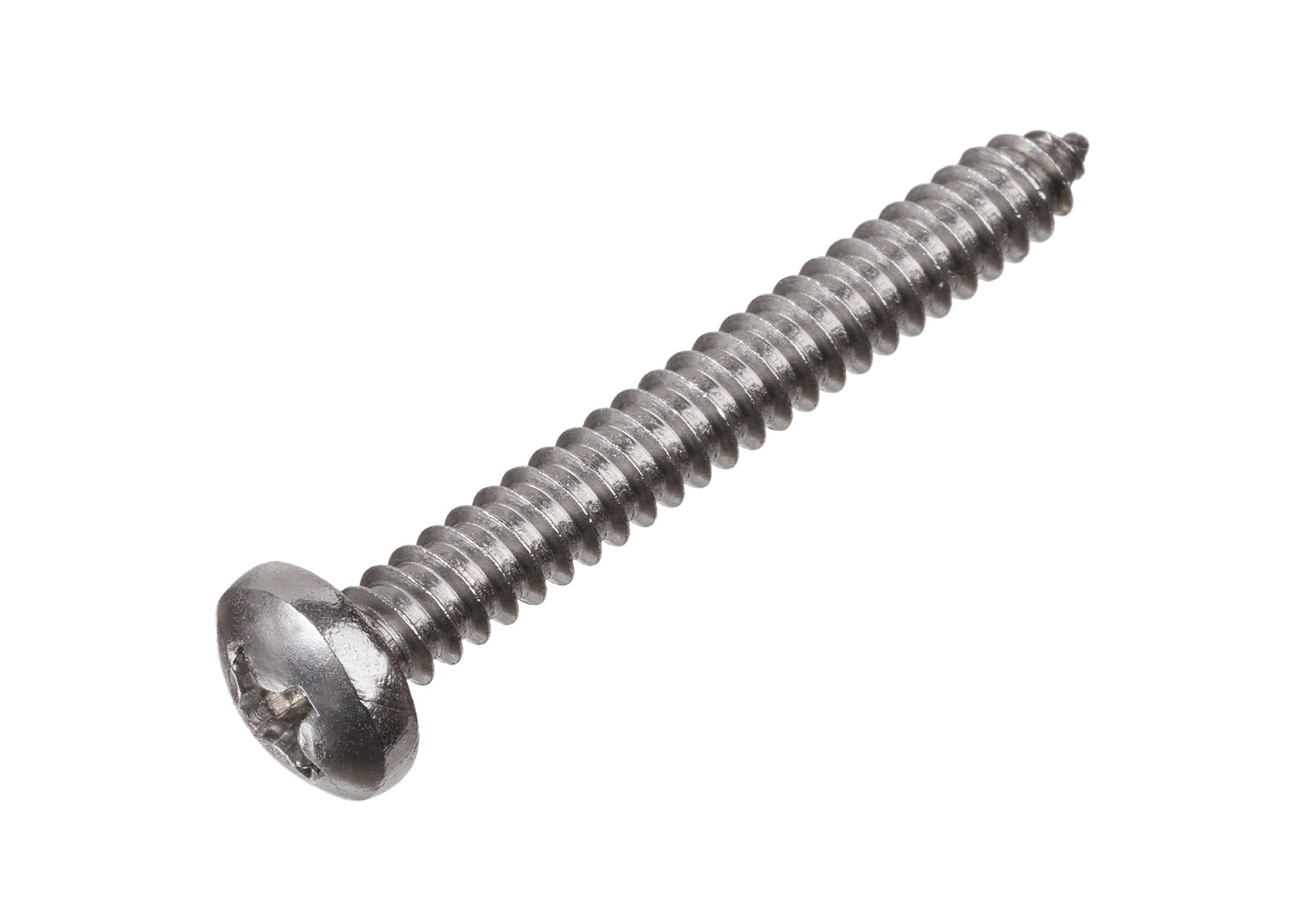 Саморез по металлу стандарта DIN 7981 из нержавеющей стали – тип крепежа, состоящего из полукруглой головки и хвостовика с полной резьбой. Самонарезающие винты DIN 7981 изготавливают из нержавеющей стали А2 (AISI 304) и А4 (AISI 316). Полусферическая головка самореза по металлу DIN 7981 оснащается шлицами Philips (крестообразный под биту Ph). Низ головки самореза выполнен в виде плоской опорной поверхности для равномерного прижатия монтируемого материала к основанию. Саморез предназначен для крепления листовой стали, фанеры, ДСП, ОСБ, ДВП, а также оргалита, пластика, поликарбоната, композитных материалов и т.п. к металлическим и деревянным несущим конструкциям посредством резьбы со специальным шагом. Перед установкой самонарезающих винтов DIN 7981 из стали А2 А4 в монтируемых материалах выполняется разметка и сверловка отверстий, соответствующих диаметру крепежа. Это позволяет предотвратить образование трещин, разрывов, нанесения царапин и других непредвиденных деформаций материала.