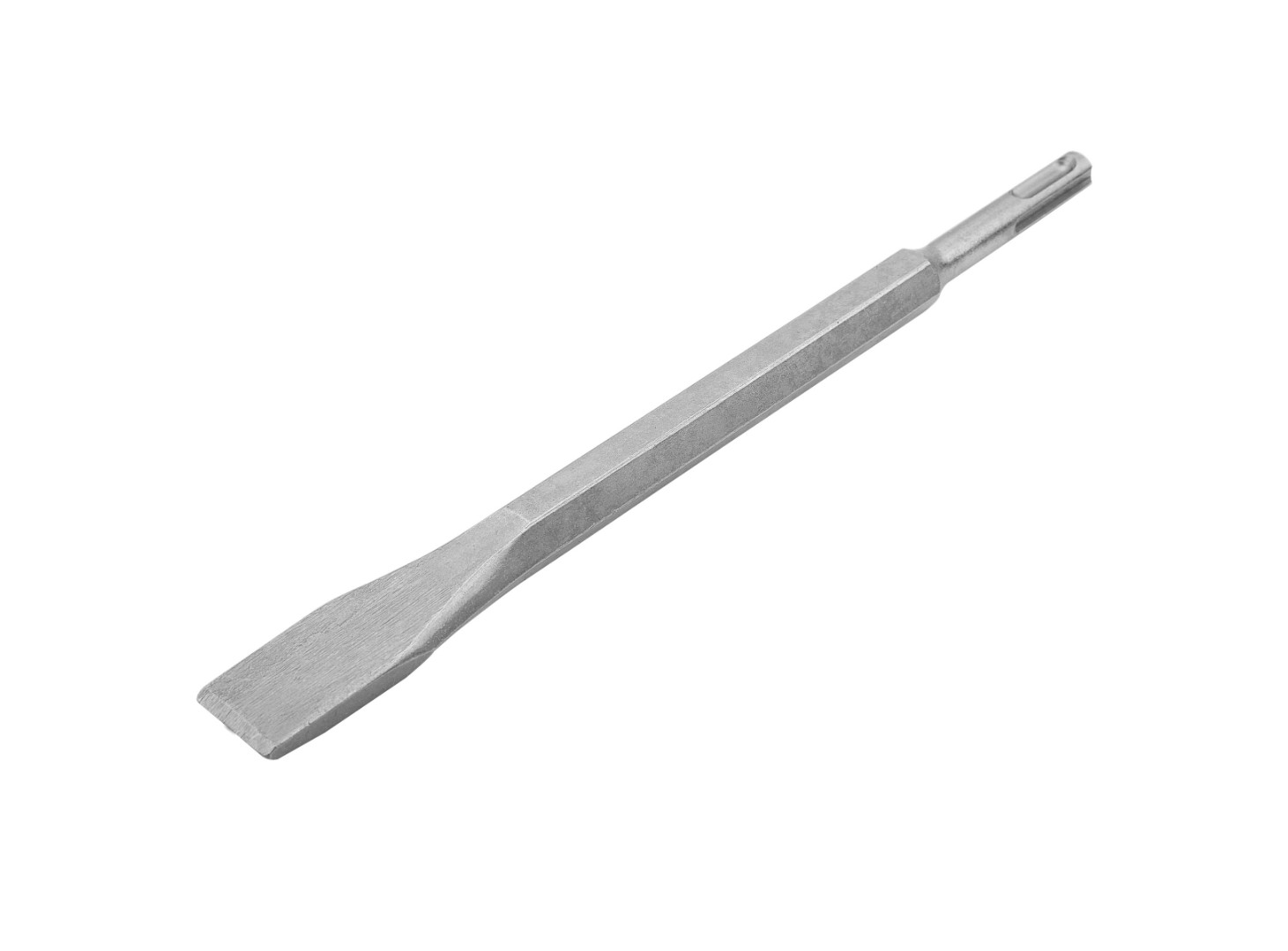 Зубило изготовлено из высокоуглеродистой легированной стали, твердость в районе режущей кромки 54…56HRC. Плоское зубило с наконечником в форме широкой лопатки предназначено для снятия старой плитки со стен.