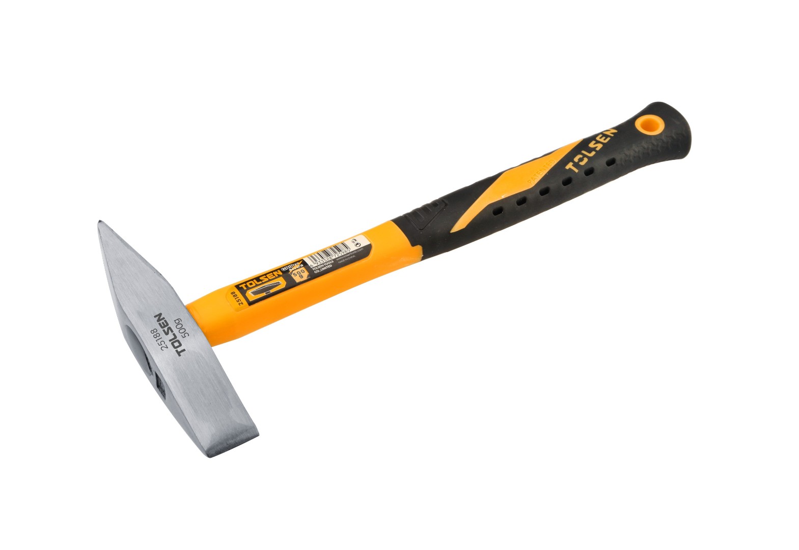 Рукоятка из прорезиненного стекловолокна для снижения вибраций при нанесении ударов.                                                                                                  Упаковка: бирка с цветной коробкой.