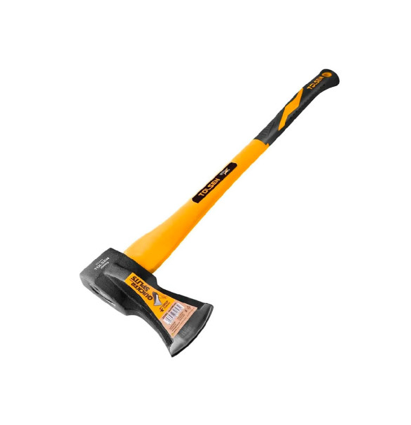 Топор КОЛУН фиберглассовая рукоятка Tolsen 2000г.  2 кг — это оптимальный вес для того, чтобы раскалывать даже крупные и сучковатые чурбаки за счет инерции.  У обычного топора лезвие тонкое (чтобы глубоко входить в дерево), а у колуна оно резко расширяется ("щеки" топора).  Колун не режет волокна, он раздвигает их. Как только широкая часть клина входит в дерево, полено буквально взрывается и распадается на две части. При ударе 2-килограммовым металлом о твердое дерево идет мощная отдача. Фибергласс гасит этот удар, защищая суставы дровосека. В отличие от дерева, фибергласс не ссыхается, не гниет и не трескается, если вы случайно промахнулись и ударили по полену не лезвием, а рукояткой (самая частая причина поломки топоров).
