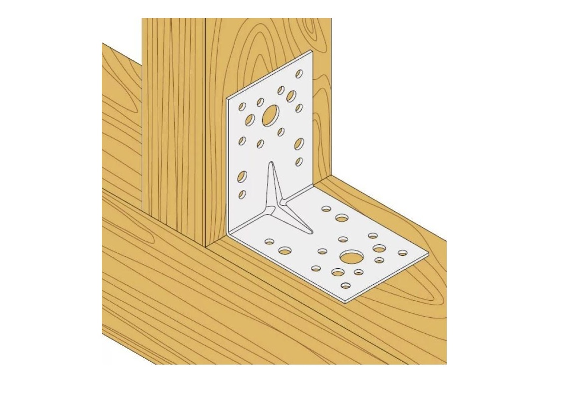 Крепежный усиленный уголок широко используется в строительстве деревянных сооружений. Крепежный уголок усиленный отличается применением ребра жесткости. Производится уголок из прочной стали, которая покрывается цинковым сплавом, который обеспечивает изделию дополнительную надежность и увеличивает его антикоррозийные свойства. Данный вид крепежа используется для придания большей жесткости соединяемых элементов. Он довольно прост в использовании, поскольку не требует врезки, то есть монтаж осуществляется при помощи обыкновенных шурупов.