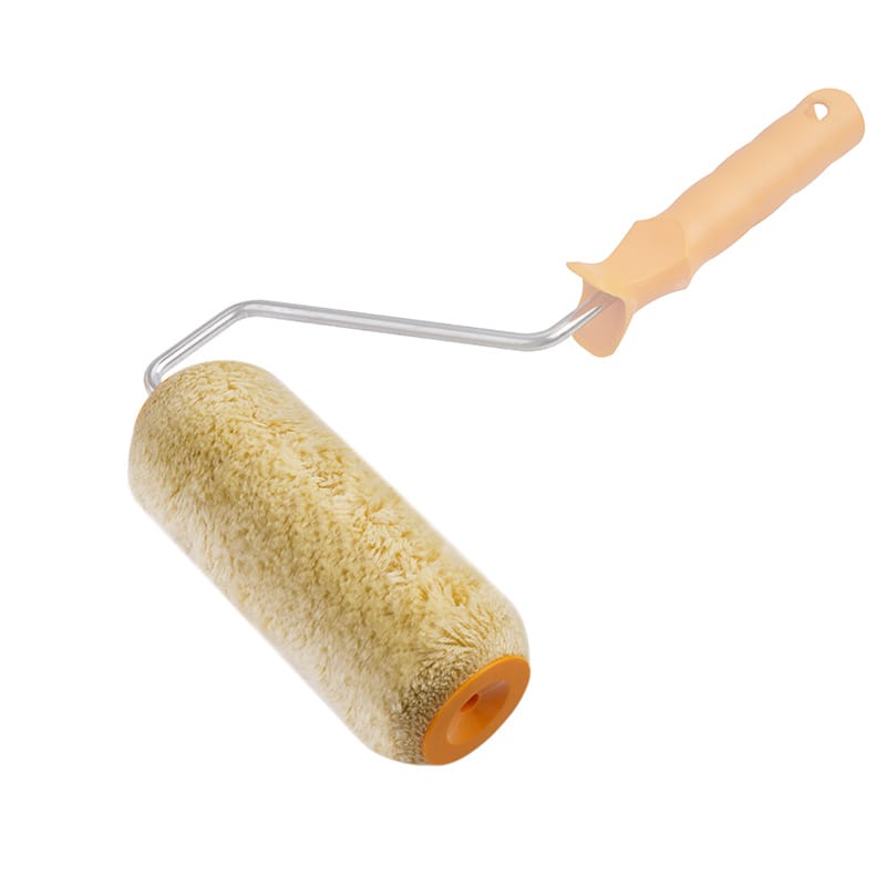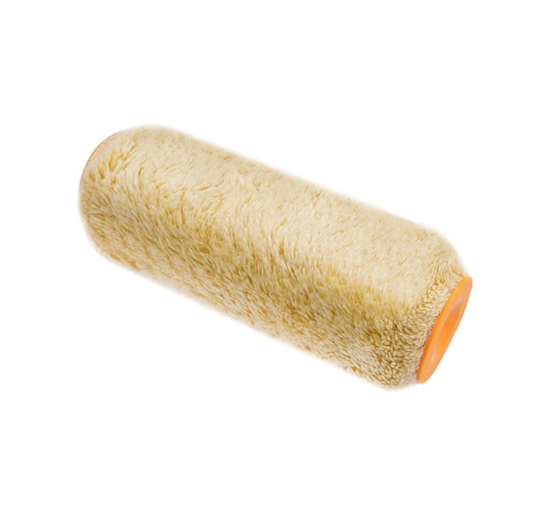 Акриловый валик — его ворс мягче, чем у полиамида, и имеет свои особенности в работе.  Акриловое волокно очень тонкое и мягкое. Оно хорошо впитывает краску, но под сильным нажимом может «проседать». Желтый цвет ворса помогает маляру видеть, насколько валик пропитан краской (особенно светлых тонов). Только акриловые, водоэмульсионные, латексные краски и грунтовки. Категорически нельзя использовать с агрессивными растворителями, эмалями ПФ-115 или лаками. Акриловый ворс от растворителя «скатывается», теряет форму и начинает лезть.
