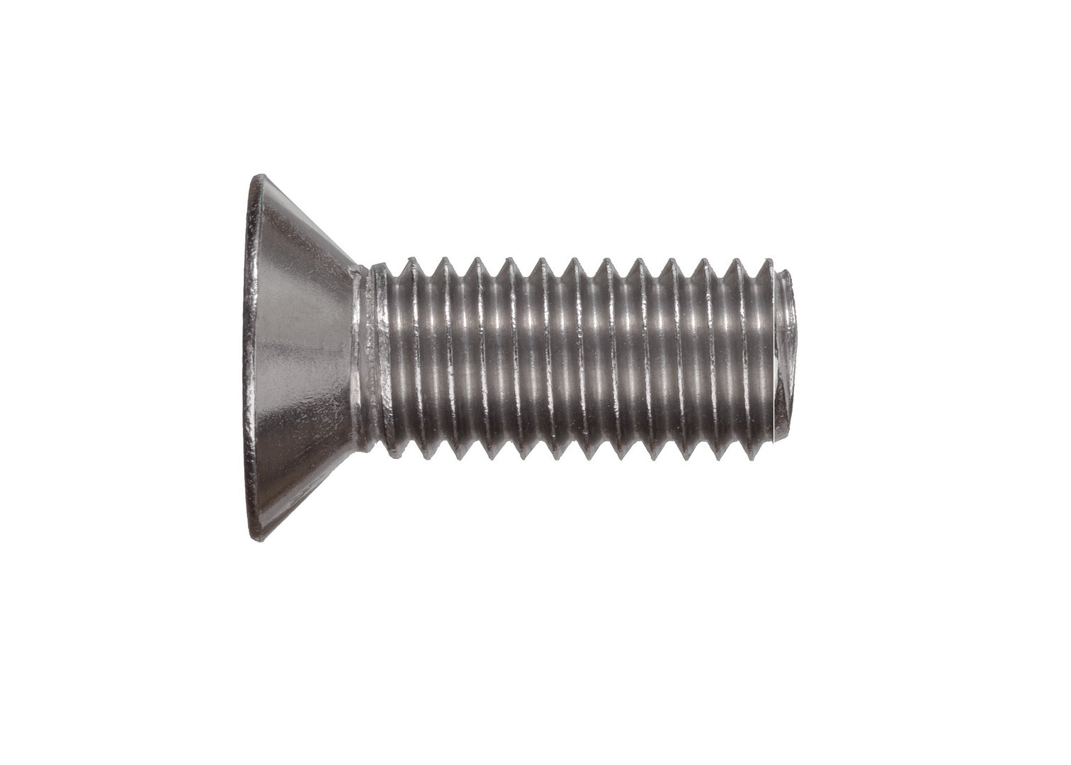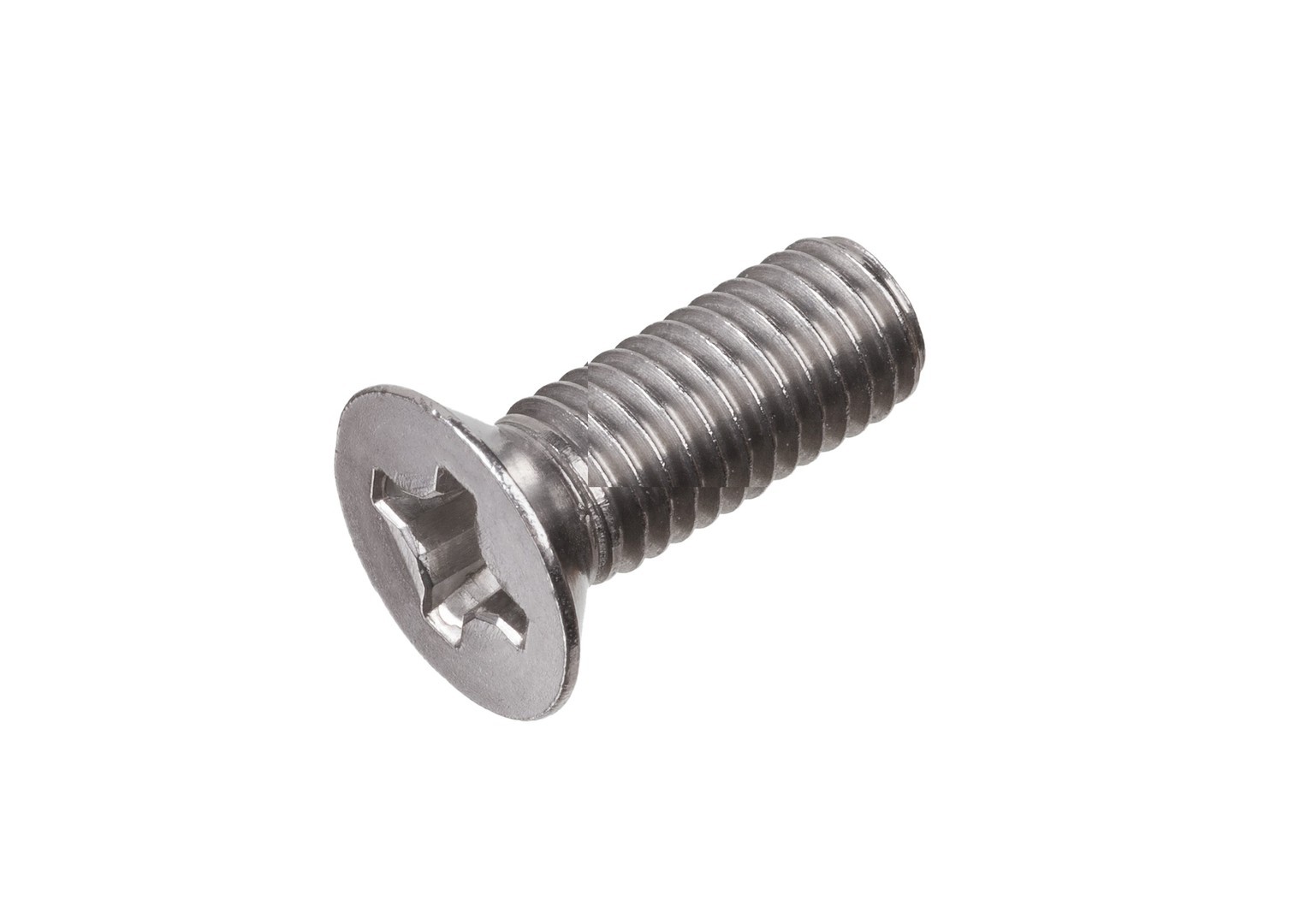Нержавеющий винт DIN 965 – вид резьбового крепежа с потайной головкой и крестообразным шлицем. Винт оснащается метрической резьбой и предназначен для соединения металлических деталей между собой. Винт требует предварительно просверленного отверстия и гайки или резьбы, выполненной непосредственно в соединяемой детали. Потайная головка нержавеющего винта DIN 965 – плоская, опорная поверхность – конусообразная, с углом головки 90°. Поэтому посадочное отверстие под головку винта зенкуется, в соответствии с размером головки. Винт DIN 965 изготавливается из нержавеющей стали А2 (AISI 304) и А4 (AISI 316). Для того чтобы получить такую сталь, в нее добавляют легирующие примеси, которые изменяют свойства получаемого материала. Добавление в качестве примеси хрома поднимает коррозионную стойкость материала. Использование легирующей примеси никеля усиливает жаропрочность готовой нержавеющей стали. Для получения специальных свойств материала дополнительно применяются углерод, азот, титан, молибден. Очень важно в работе с винтами правильно подбирать шлиц для ввинчивания, иначе грани головки очень быстро стираются и процесс демонтажа становится очень трудоемким.