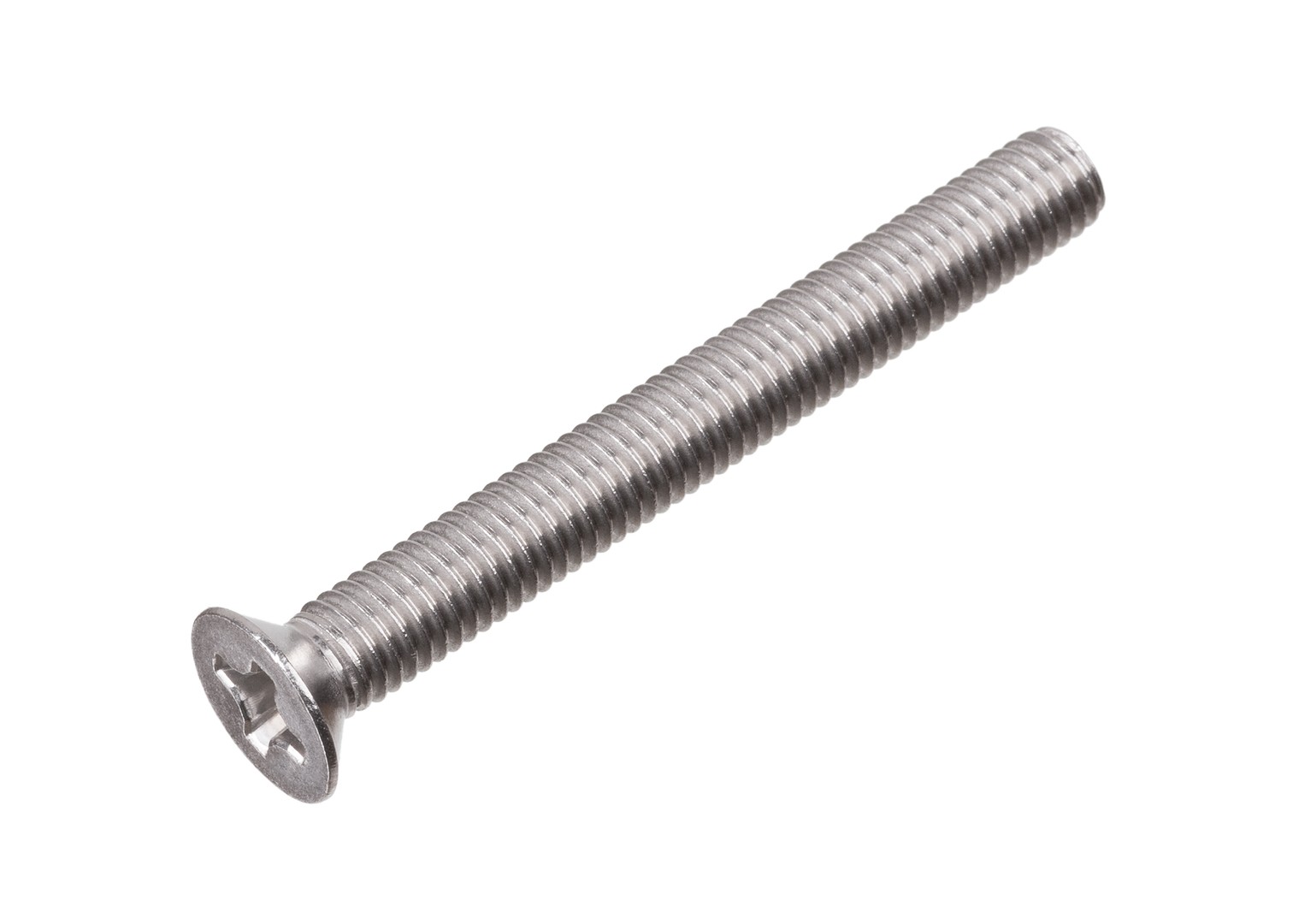 Нержавеющий винт DIN 965 – вид резьбового крепежа с потайной головкой и крестообразным шлицем. Винт оснащается метрической резьбой и предназначен для соединения металлических деталей между собой. Винт требует предварительно просверленного отверстия и гайки или резьбы, выполненной непосредственно в соединяемой детали. Потайная головка нержавеющего винта DIN 965 – плоская, опорная поверхность – конусообразная, с углом головки 90°. Поэтому посадочное отверстие под головку винта зенкуется, в соответствии с размером головки. Винт DIN 965 изготавливается из нержавеющей стали А2 (AISI 304) и А4 (AISI 316). Для того чтобы получить такую сталь, в нее добавляют легирующие примеси, которые изменяют свойства получаемого материала. Добавление в качестве примеси хрома поднимает коррозионную стойкость материала. Использование легирующей примеси никеля усиливает жаропрочность готовой нержавеющей стали. Для получения специальных свойств материала дополнительно применяются углерод, азот, титан, молибден. Очень важно в работе с винтами правильно подбирать шлиц для ввинчивания, иначе грани головки очень быстро стираются и процесс демонтажа становится очень трудоемким.