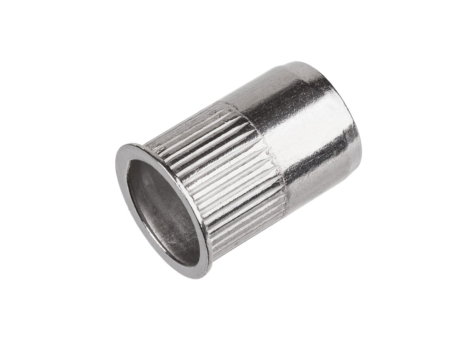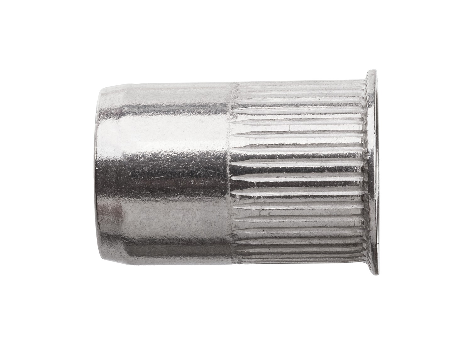 Резьбовая заклёпка, в отличие от обычной, не просто соединяет металлические листы между собой, но и снабжена внутренней винтовой резьбой. Поэтому такая заклёпка может использоваться в сравнительно тонколистовых конструкциях, которые нуждаются в прочной резьбе для последующего применения. Основные преимущества такого крепежа – это простота его установки, отсутствие деформации и обесцвечивания материала заготовки. Предназначение гаечных заклепок это создание резьбы в металле толщина которого может быть от 0,3 мм до 6,0 мм, для последующего соединения деталей при помощи винтов или болтов.